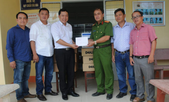 Đại diện Diệu Thịnh cùng Báo Công an TP.HCM tặng 5 dàn máy vi tính cho Công an Tỉnh Kiên Giang